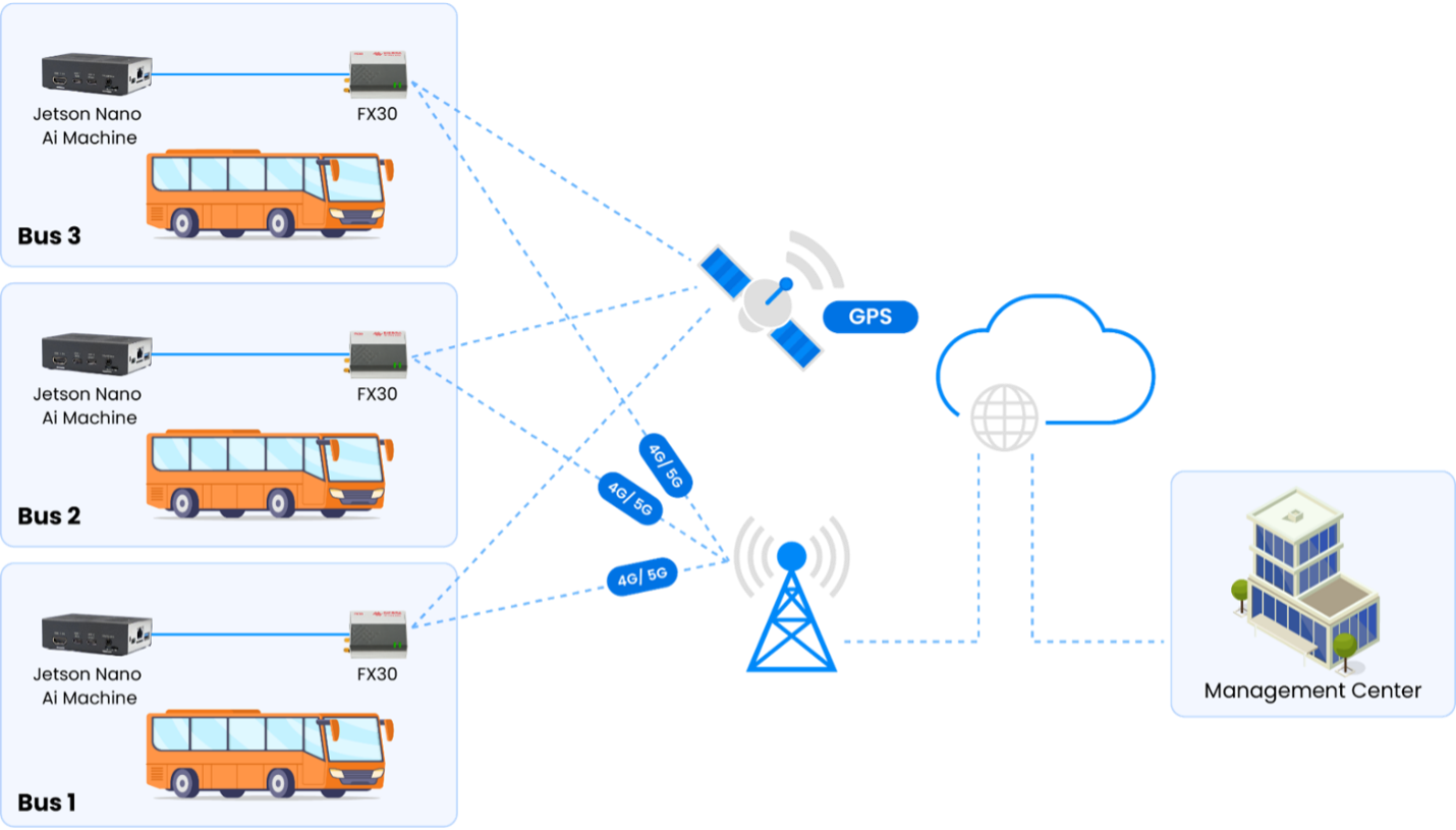 TMA deployed an end-to-end Bus Monitoring System consisting of embedded devices, AI-based data analytics, and a web dashboard: