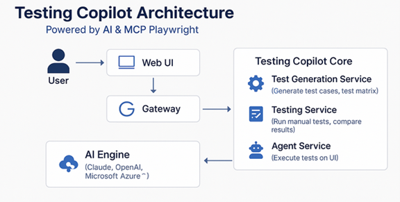 Testing Copilot is a new AI-powered tool developed by TMA to transform the way we do software testing. It is powered by MCP Playwright — a Model Context Protocol that provides browser automation capabilities using Playwright. This allows our system to understand and execute test cases step-by-step, mimicking how a real tester interacts with the web. Testing Copilot can analyze documents, generate detailed test cases, perform manual test executions, and automatically convert them into automation scripts. Our main goal is to reduce the effort spent on repetitive testing, coding, and planning tasks while accelerating the CI/CD pipeline.